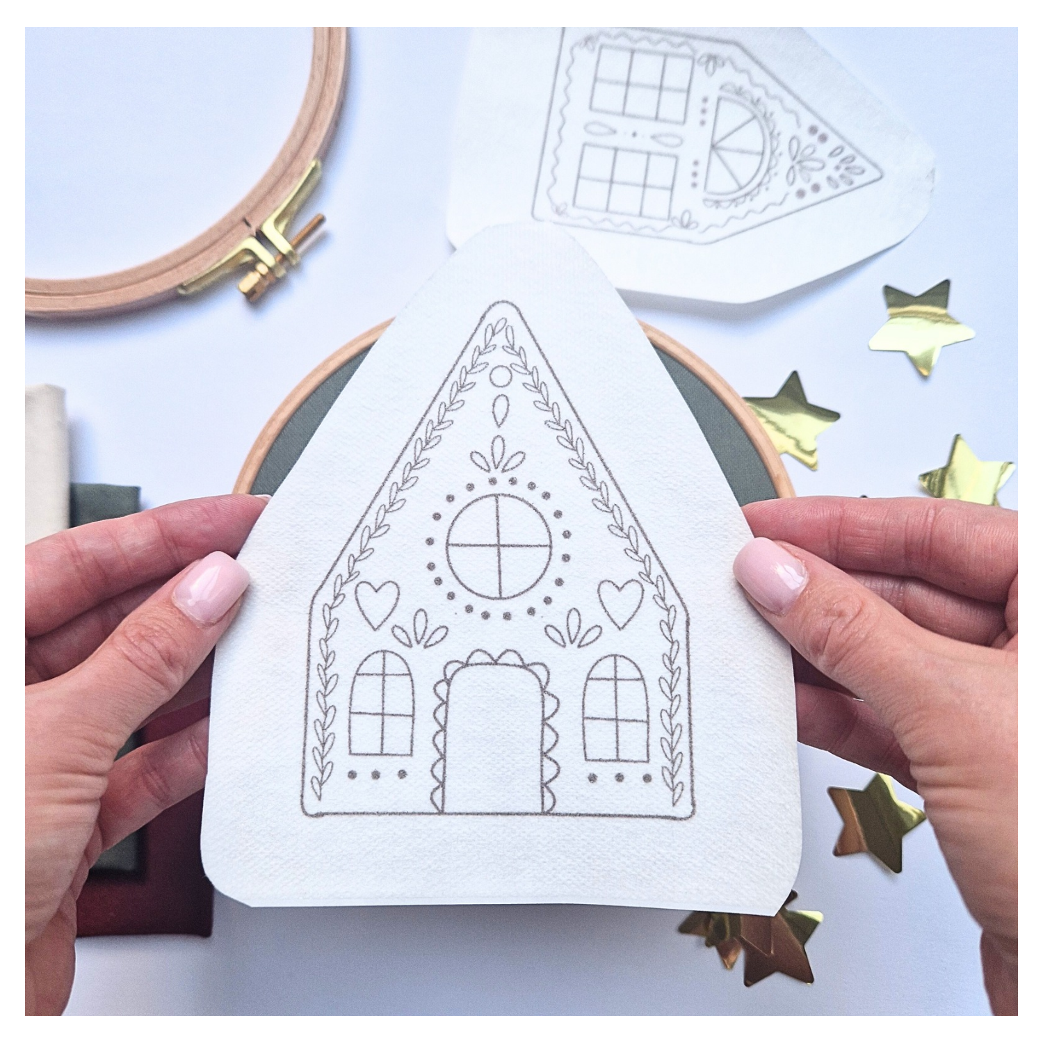 Das Besondere: Nach dem Besticken kannst du das Vlies einfach auswaschen, sodass nur deine kunstvollen Stickereien auf dem Stoff zurückbleiben. Diese Sticker eignen sich perfekt für winterliche Projekte und bringen weihnachtliche Stimmung auf Kleidung, Kissen oder andere Stoffstücke. Erwecke die charmanten Lebkuchenhäuser zum Leben und mach sie zu einem einzigartigen Hingucker!