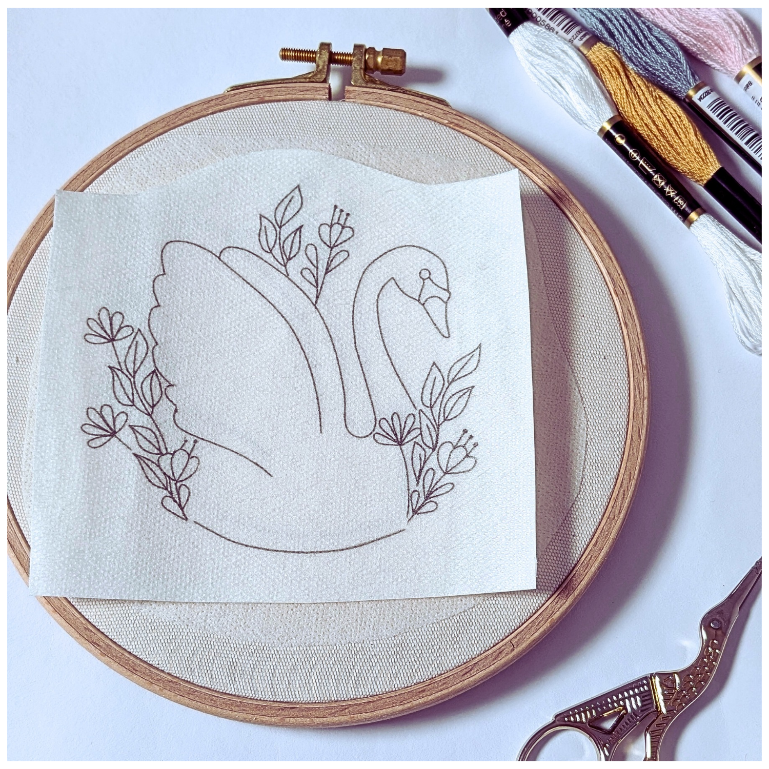 Sticker mit einem Schwan und Blumen für einen 16cm Stickring.