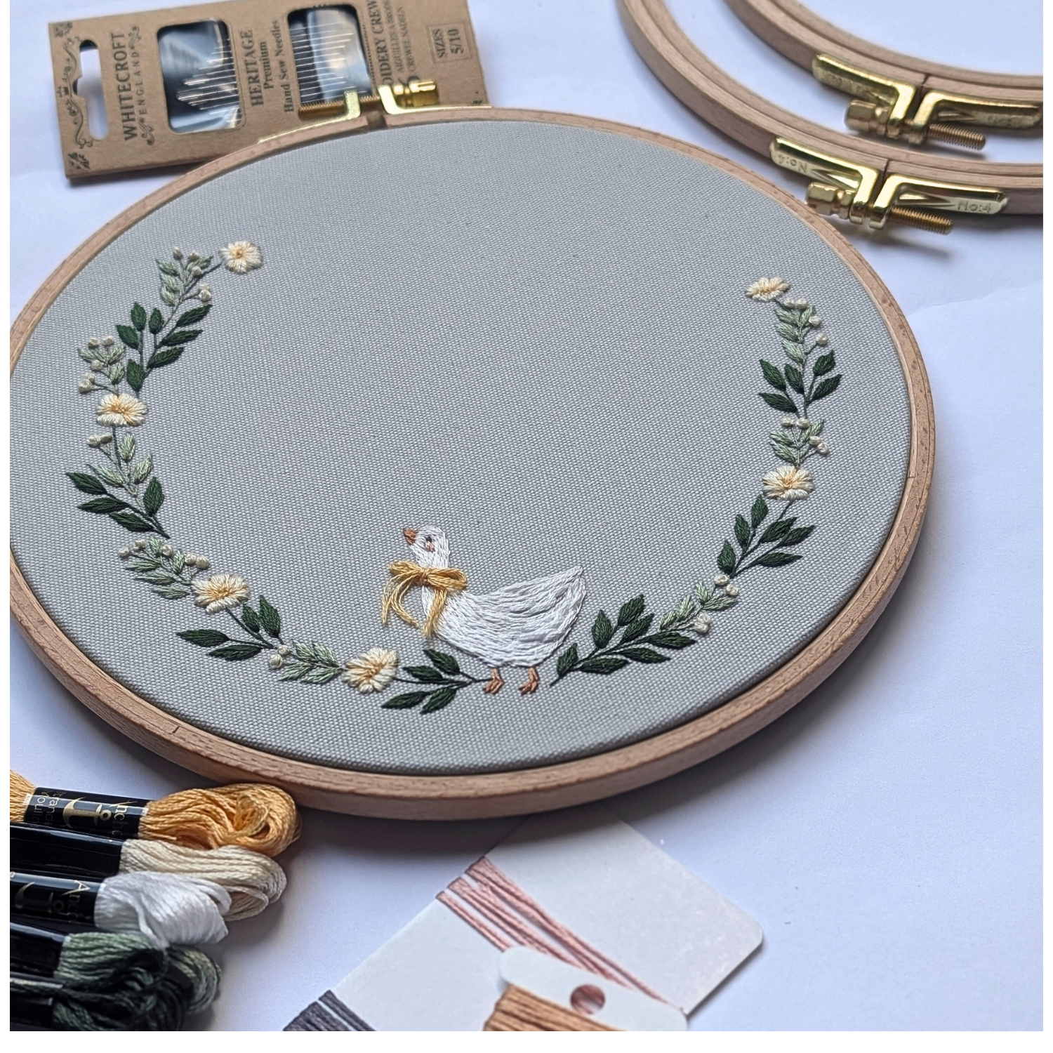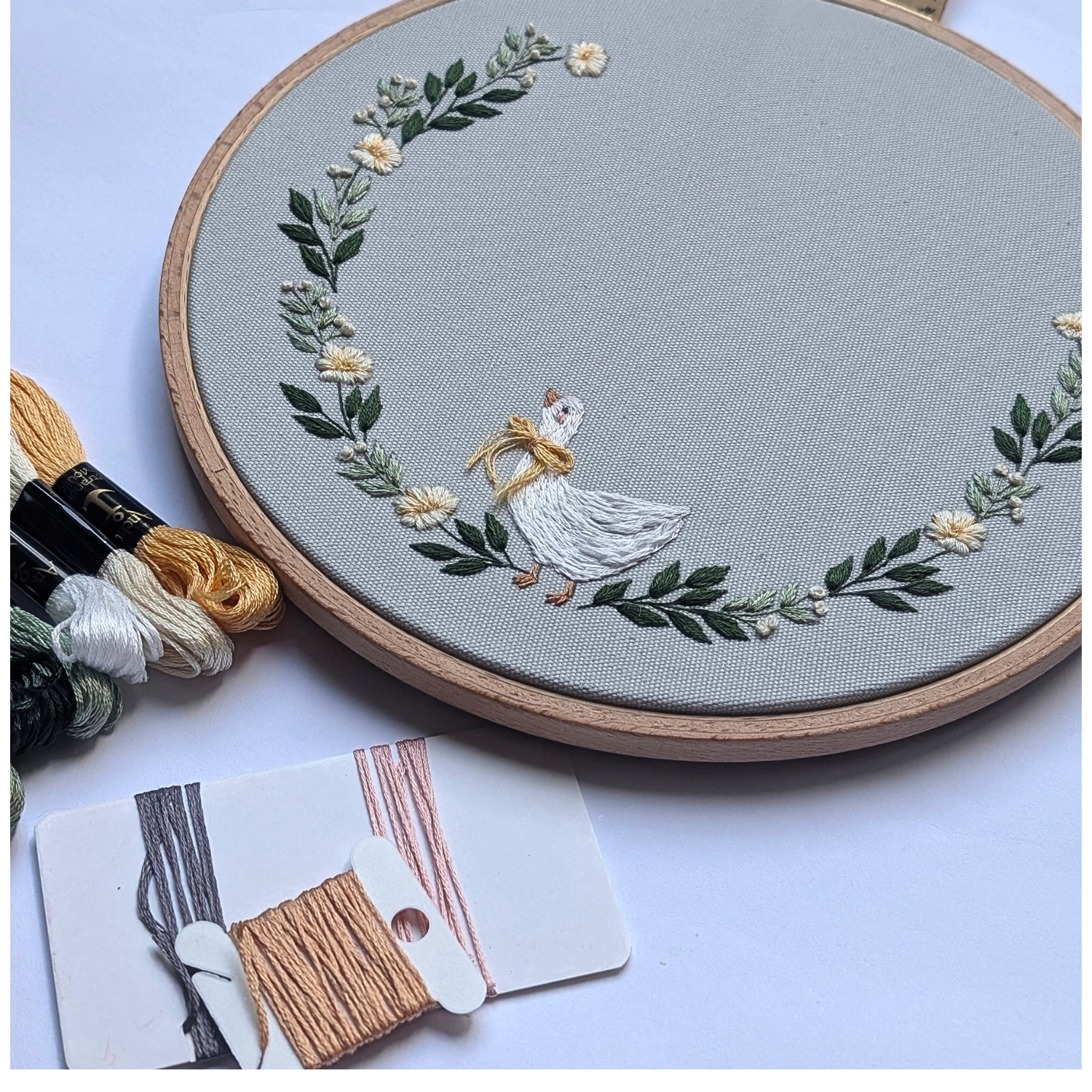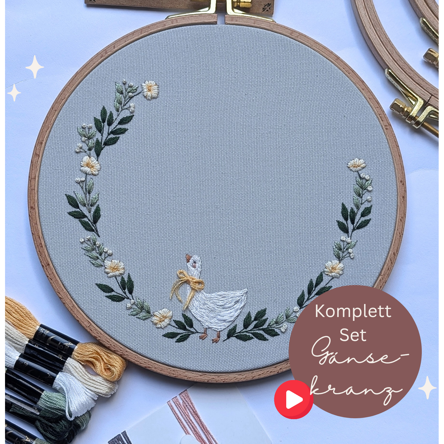 Komplettes Stickset – Gans & Blumenkranz 🪡✨
