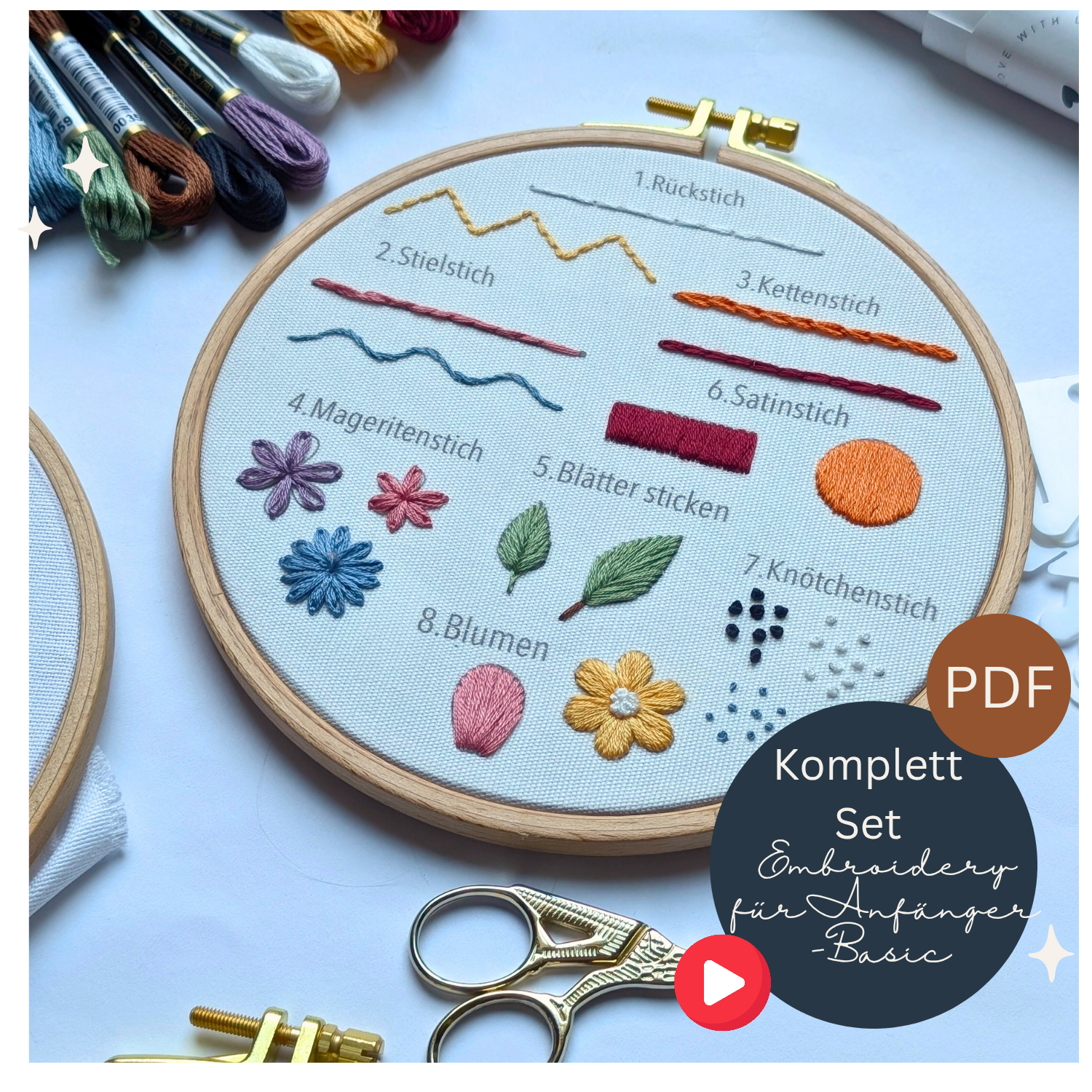 Dieses Stickset für Anfänger ist perfekt für alle, die in die Welt der Modern Embroidery eintauchen möchten. Es enthält meine 8 liebsten Basic Stickstiche – sorgfältig ausgewählt, um dir eine vielseitige Grundlage zu bieten. Egal, ob du filigrane Linien sticken oder wunderschöne Füllungen kreieren möchtest, mit diesen Stichen kannst du deiner Kreativität freien Lauf lassen.
